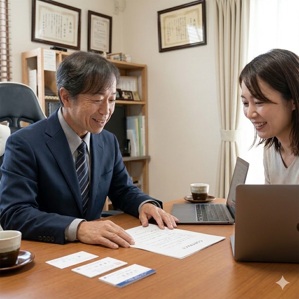 ご家族に想いがまっすぐ伝わる遺言書づくりを、行政書士が伴走します。内容設計から文案作成、必要書類の整備までワンストップでサポート。公証役場の手配や証人の準備も当方で対応するので、はじめてでも安心です。